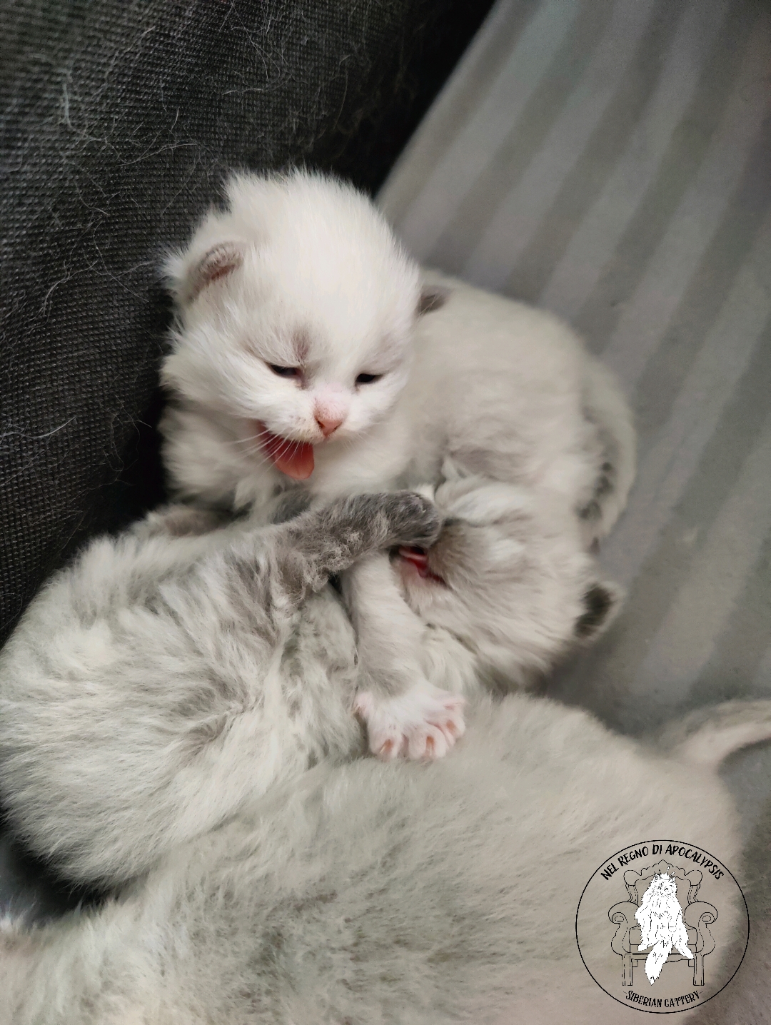 Ogni cucciolo che nasce con noi cresce in un ambiente familiare, circondato da attenzioni e tanto amore, e sarà pronto a donare felicità alla famiglia adottante. I cuccioli vengono ceduti a partire dal novantesimo giorno di età, in seguito a un incontro conoscitivo e alla sottoscrizione di un contratto di cessione. I cuccioli sono ceduti già vaccinati e con il ciclo completo di trattamenti antiparassitari, sia interni che esterni. Insieme al cucciolo viene fornito un certificato di buona salute, un libretto sanitario e il Pedigree riconosciuto dal Ministero delle Politiche Agricole, oltre alla copia del pedigree e dei test dei genitori. I nostri cuccioli sono abituati a vivere con gli altri gatti e con le persone di ogni età. Sono abituati a usare la lettiera e a mangiare autonomamente ogni tipo di pet food. Con il nostro impegno quotidiano, ci assicuriamo che ogni cucciolo cresca sano, equilibrato e pronto a portare gioia a chi deciderà di adottarlo.